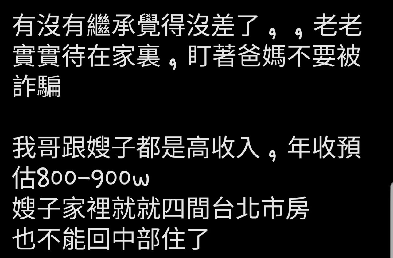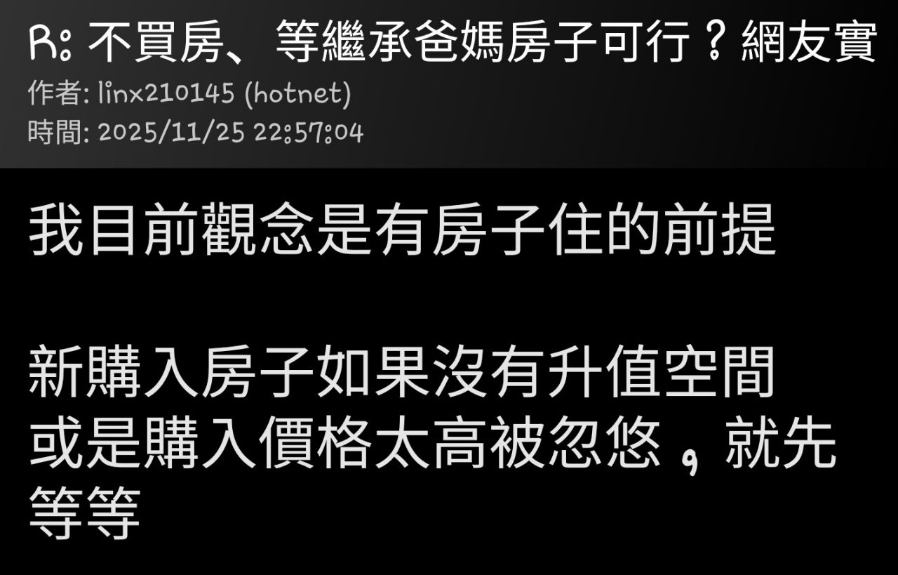 Re: [新聞] 不買房、等繼承爸媽房子可行?網友實已刪文