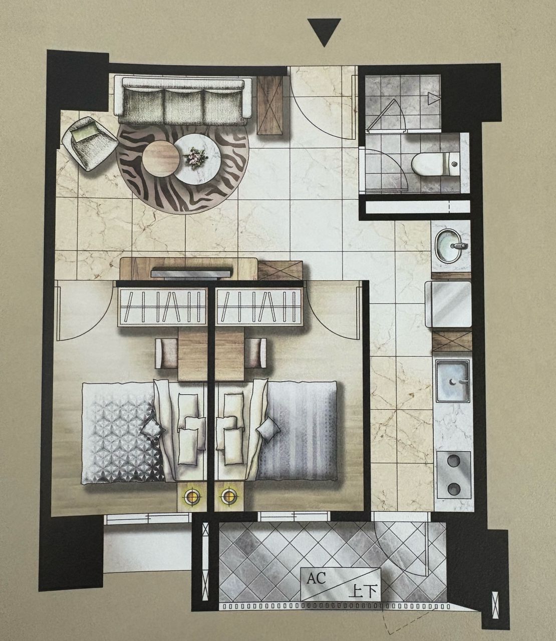 室內13坪,我覺得缺點是浴室洗手台在外面,比較不能接受。