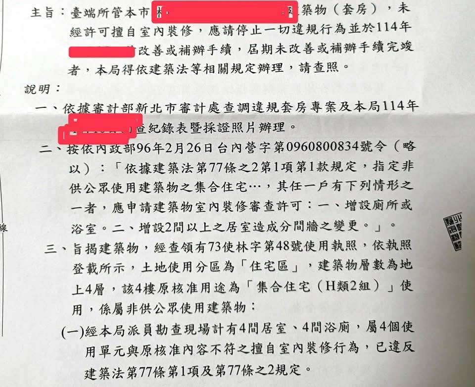 前陣日子收到公文內容大致如下:因審計部加審計處加公務局聯合查套房違規(找人去了