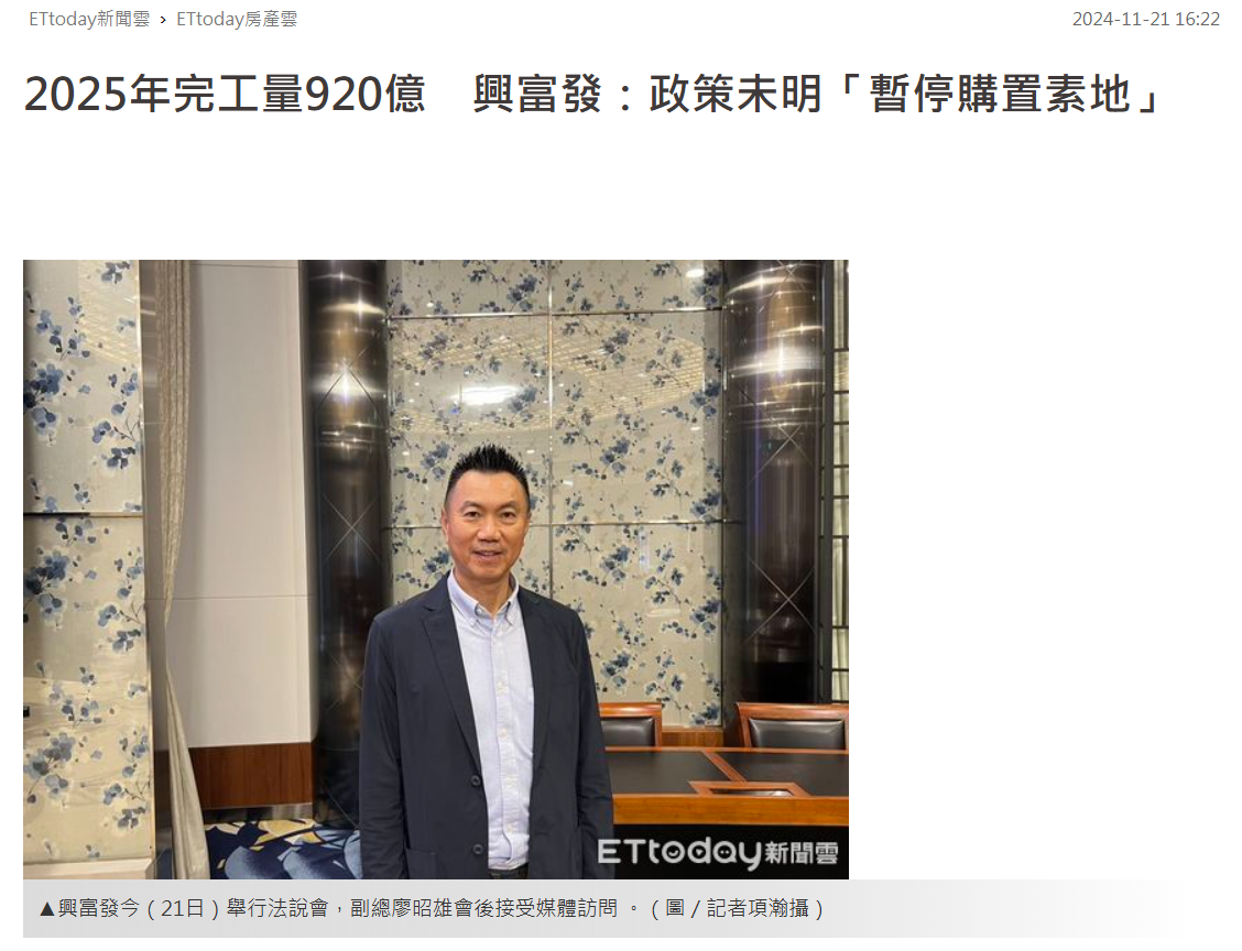 2025年完工量920億 興富發:政策未明「暫停購置素地」2024-11-21