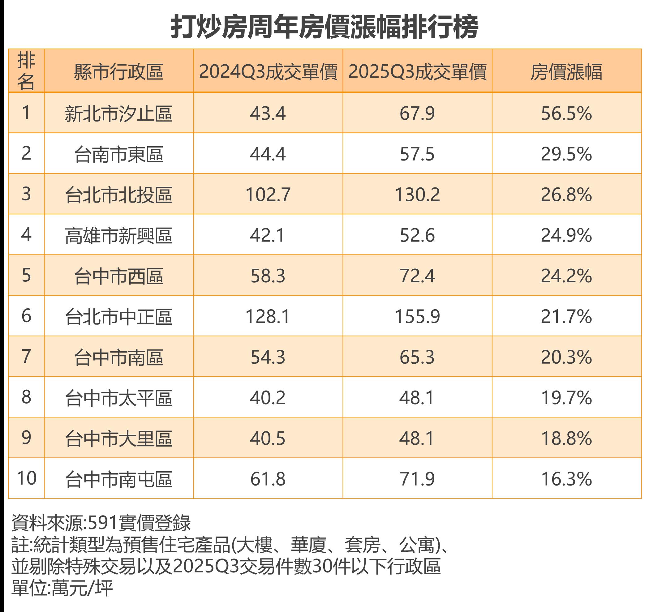 [新聞] 房價愈打愈高 第3季六都10區房價逆勢漲逾一成 這區一年漲五成