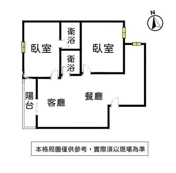 格局 : 2 房 2 廳 2 衛 1 陽台
