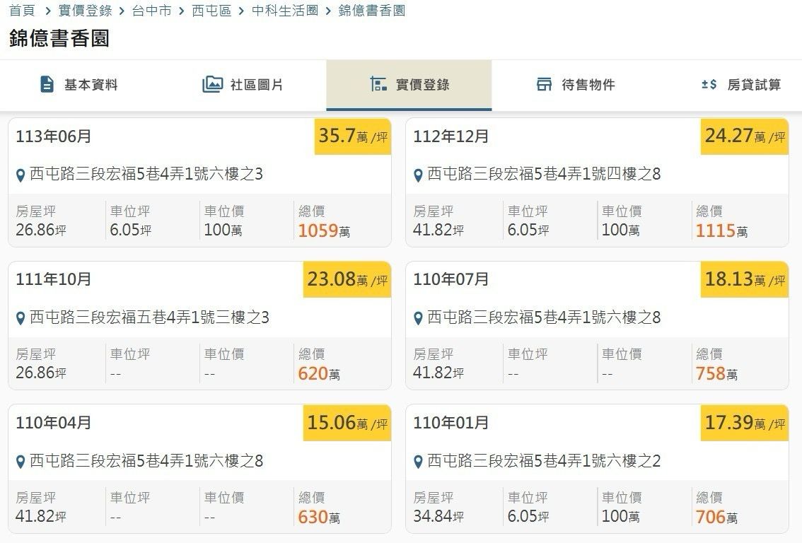 本物件附近地址實價登錄 :