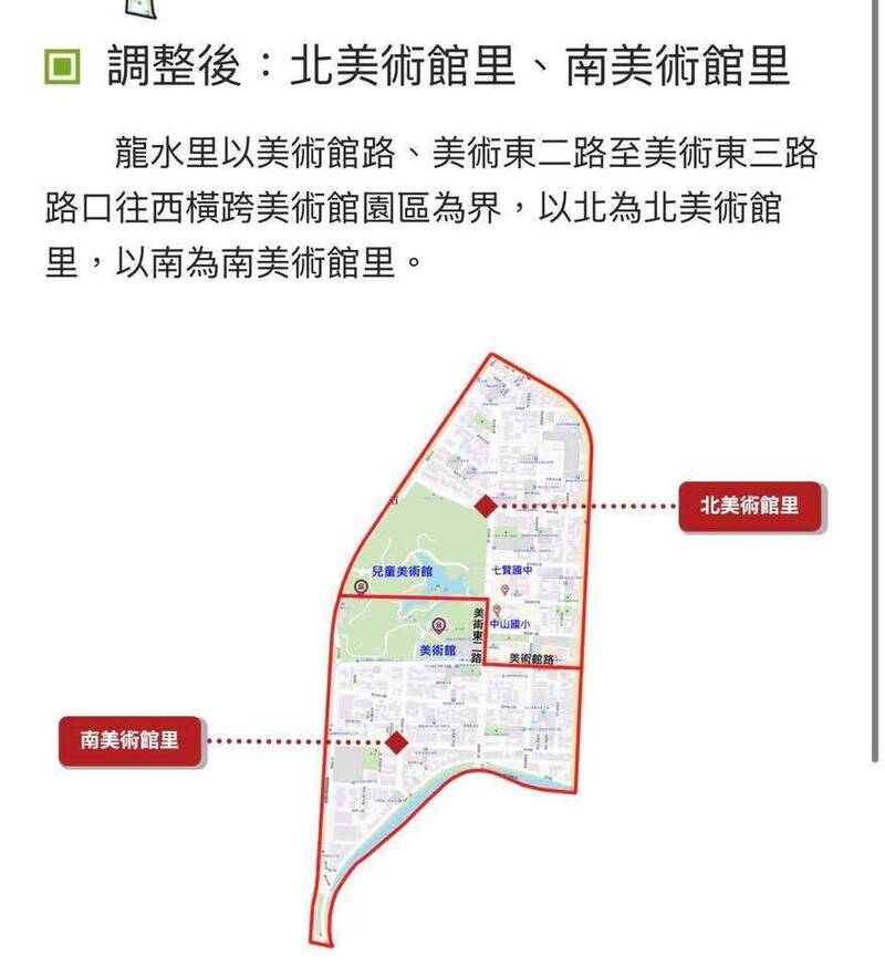 就須分里,龍水里已超過上限,這波是以超過1萬戶、3萬人口以上的里進行調整;拆里後