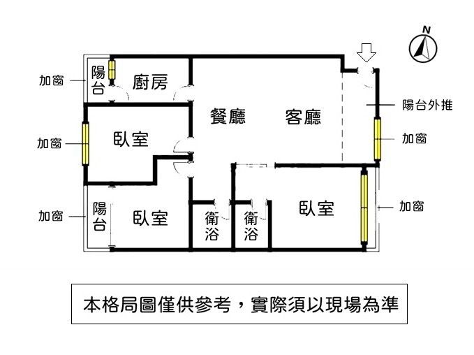 格局 : 3 房 2 廳 2 衛 2 陽台