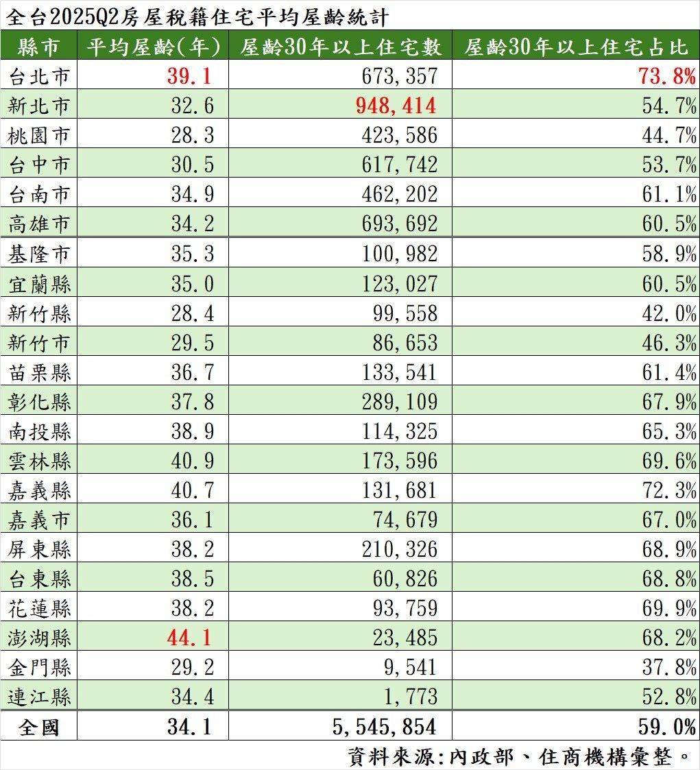 在新北30年以上的房子佔47%