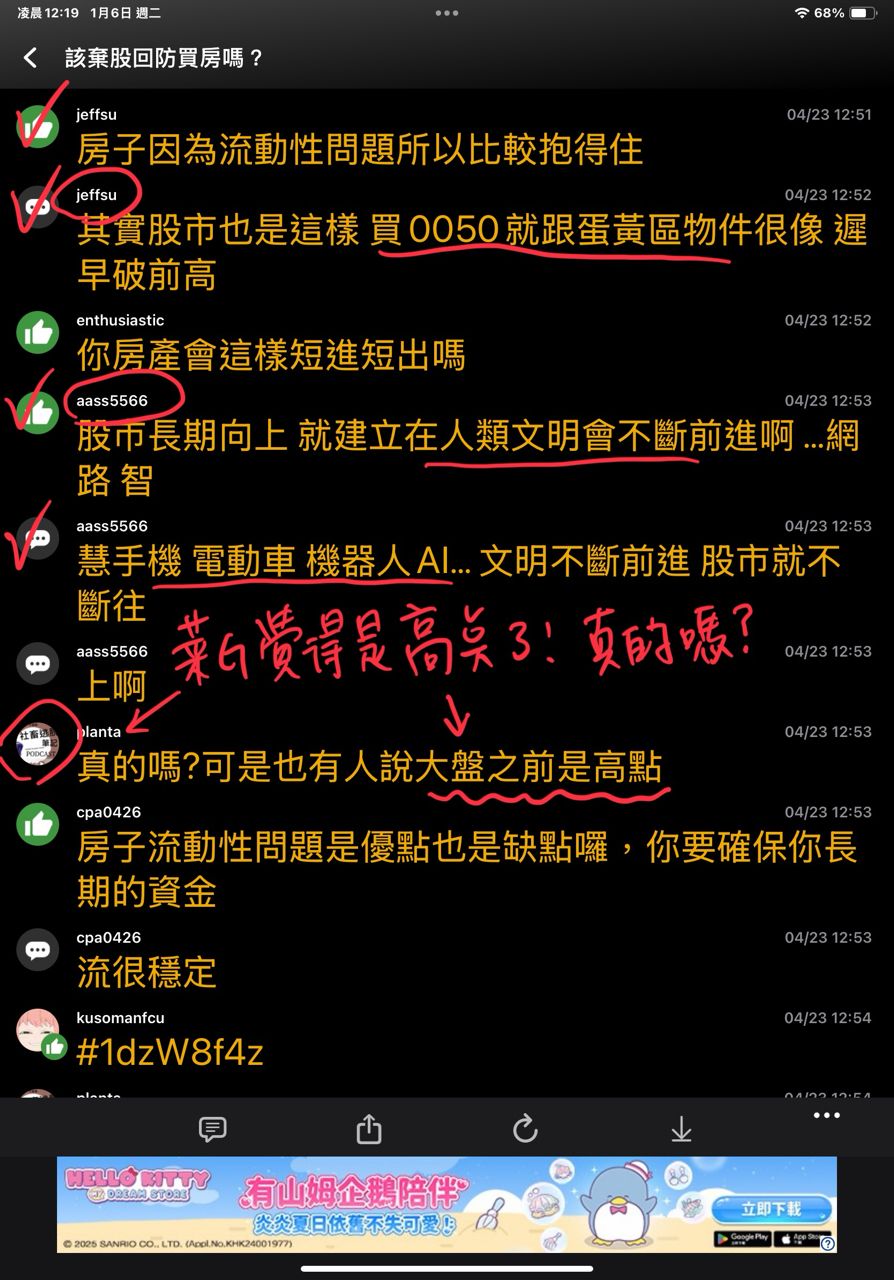 慮現金買了,錢多誰還管金龍」、「台股這樣繼續漲大家都現金買房了,誰要貸款啦?」