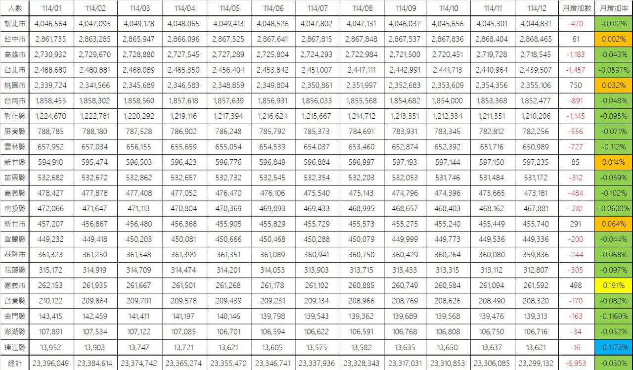 1. 嘉義縣:-42(-0.021%) - 量最多