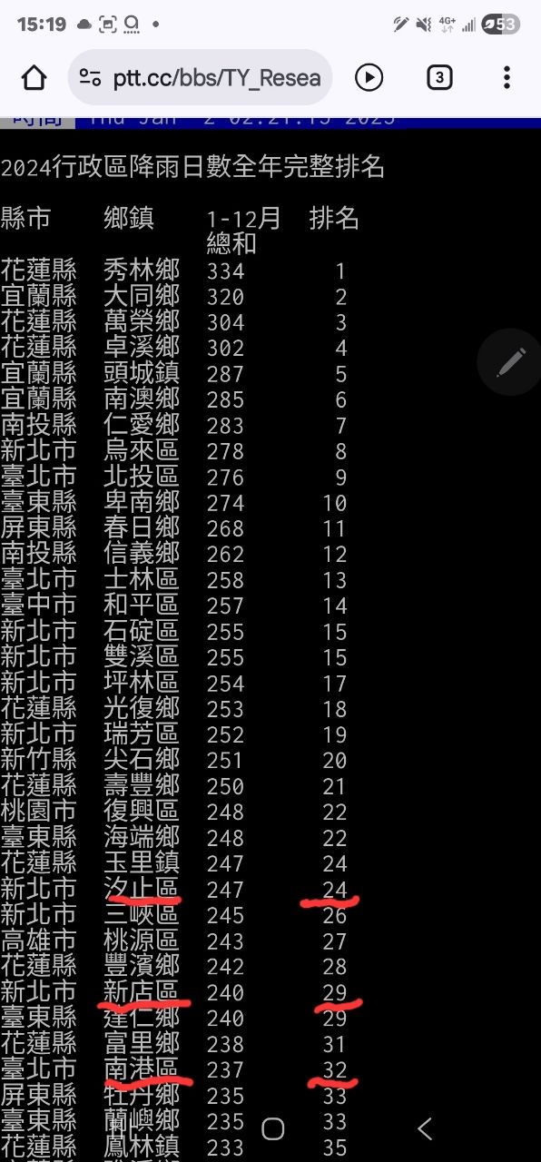 但南港跟新店也是超愛下雨啊