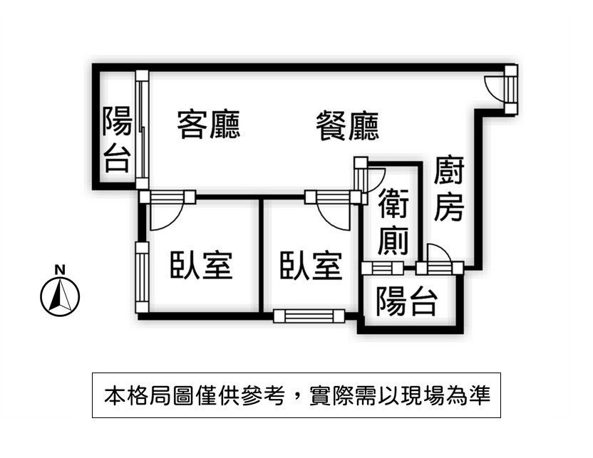 格局 : 2 房 2 廳 1 衛 2 陽台