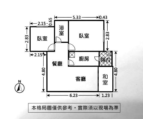 格局 : 2 房 2 廳 1 衛 1 陽台