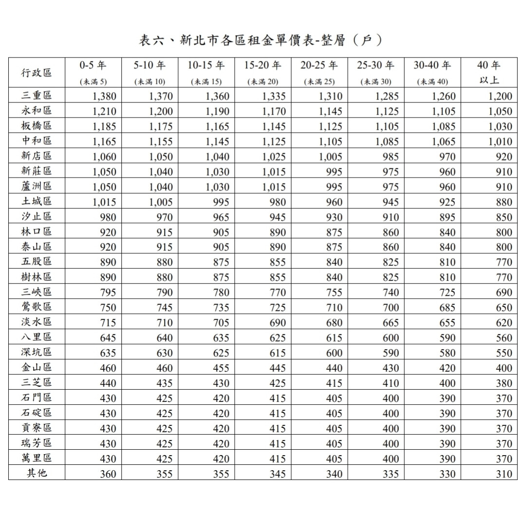 新北也有套房表我沒貼