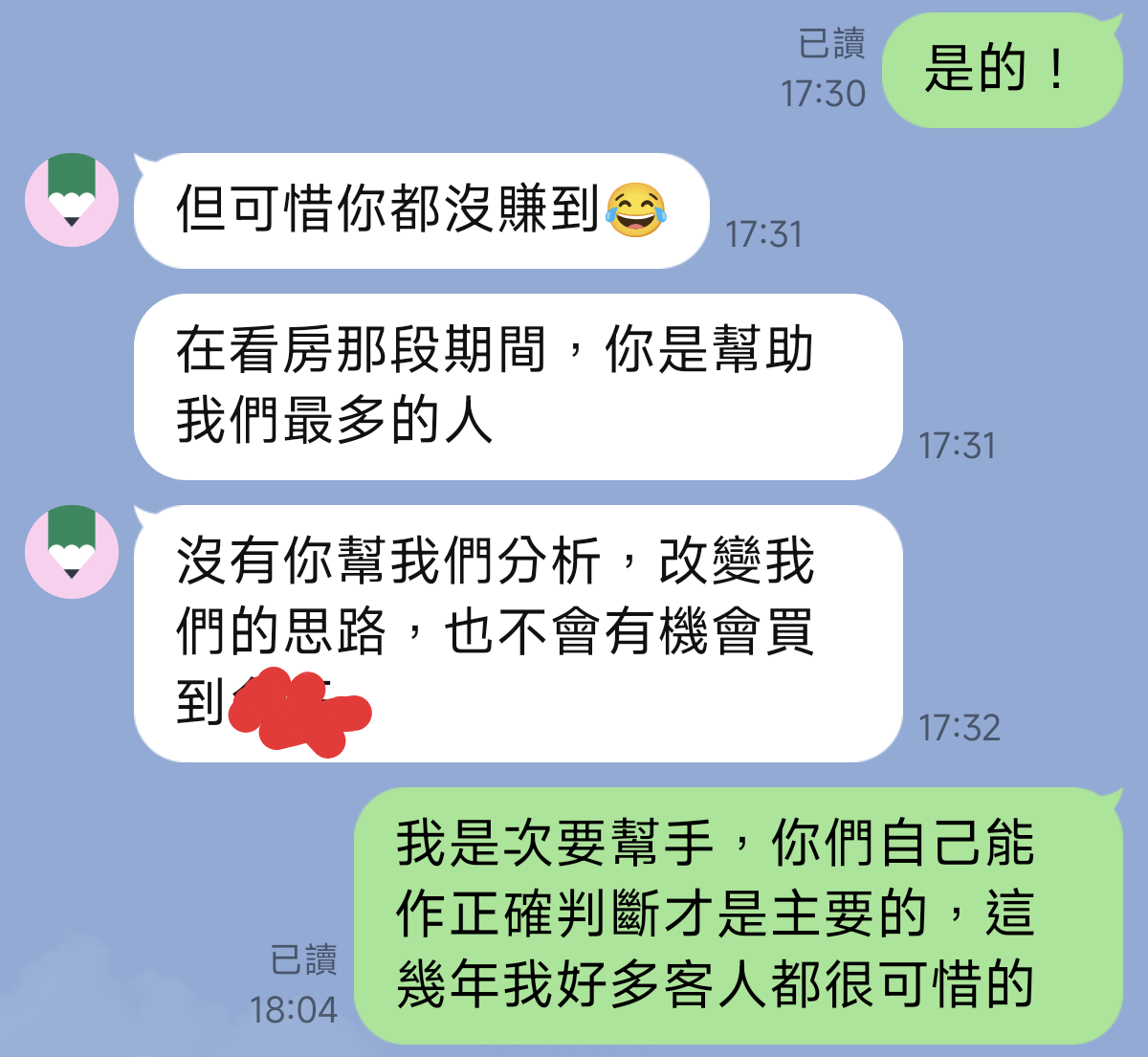 啊! 然後有一些抽到不敢聯絡我的,不要覺得仲介都是8+9