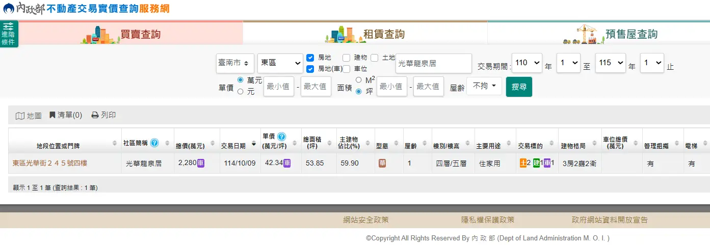 建物門牌:台南市東區光華街