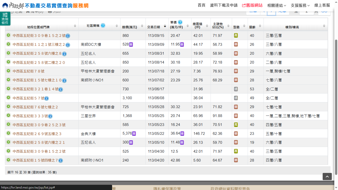 建物門牌: 台南市中西區五妃街