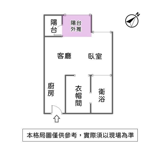 格局 : 1 房 1 廳 1 衛 1 陽台