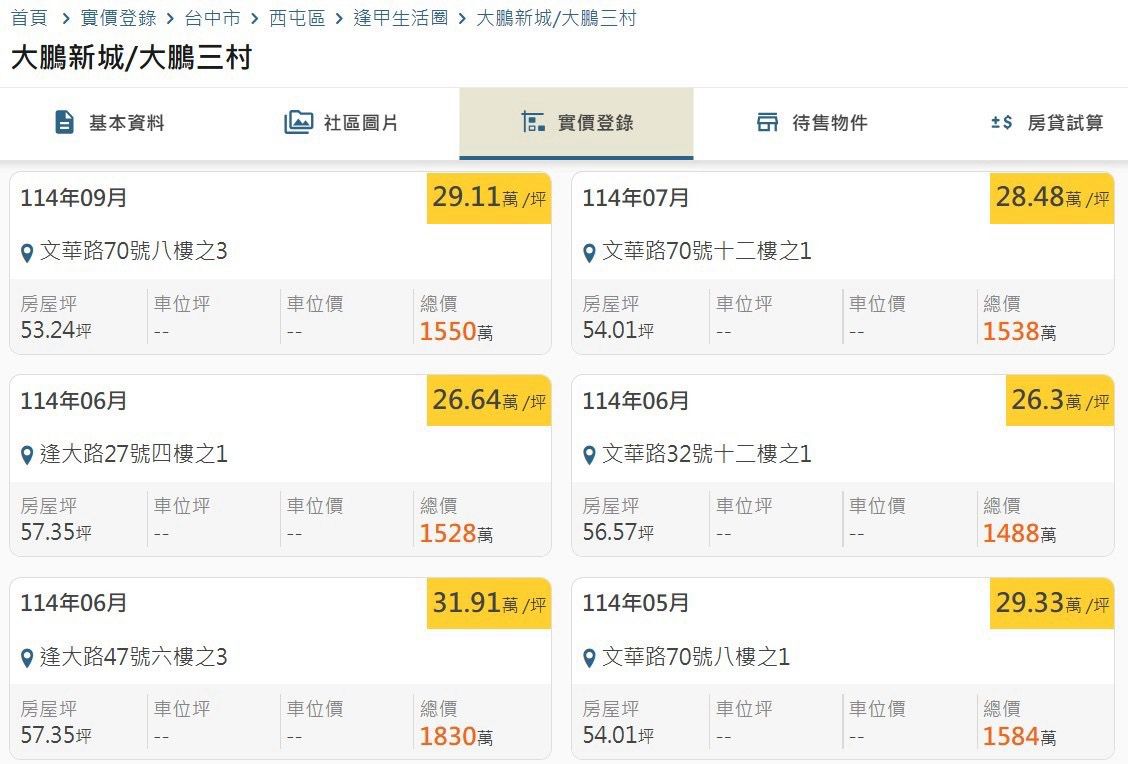 建物門牌: 臺中市西屯區文華路(大鵬新城)