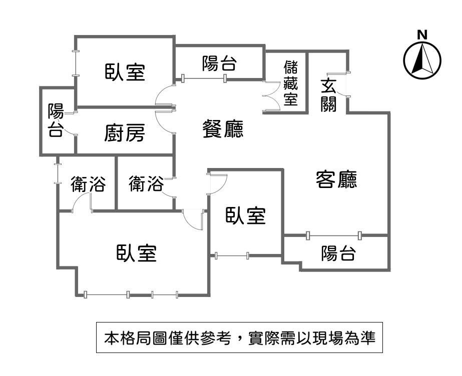 格局 : 3 房 2 廳 2 衛 3 陽台