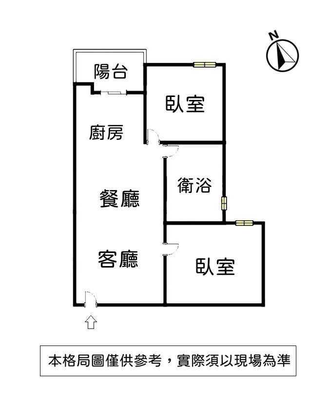 格局 : 2 房 2 廳 1 衛 1 陽台