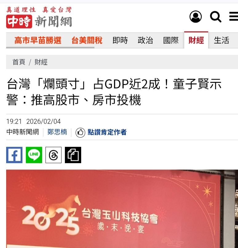 3.台灣爛頭寸佔GDP兩成,熱錢太多不是進股票就是進房市再來就是股票賺完現金買房!