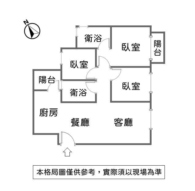 格局 : 3 房 2 廳 2 衛 2 陽台