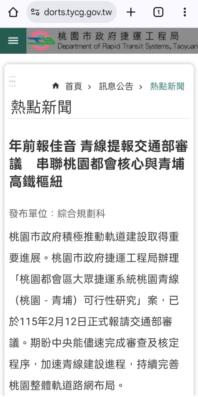 [情報] 桃園市政府:青線串連桃園都會核心與高鐵