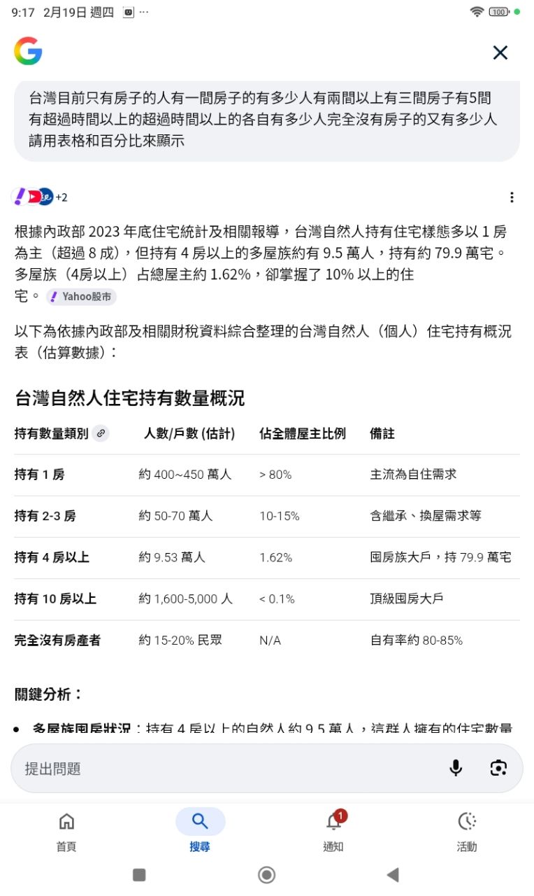 不過AI提出一個分析蠻有意思的,這一千多人,一趴的人數,竟然擁有十分之一的房子,
