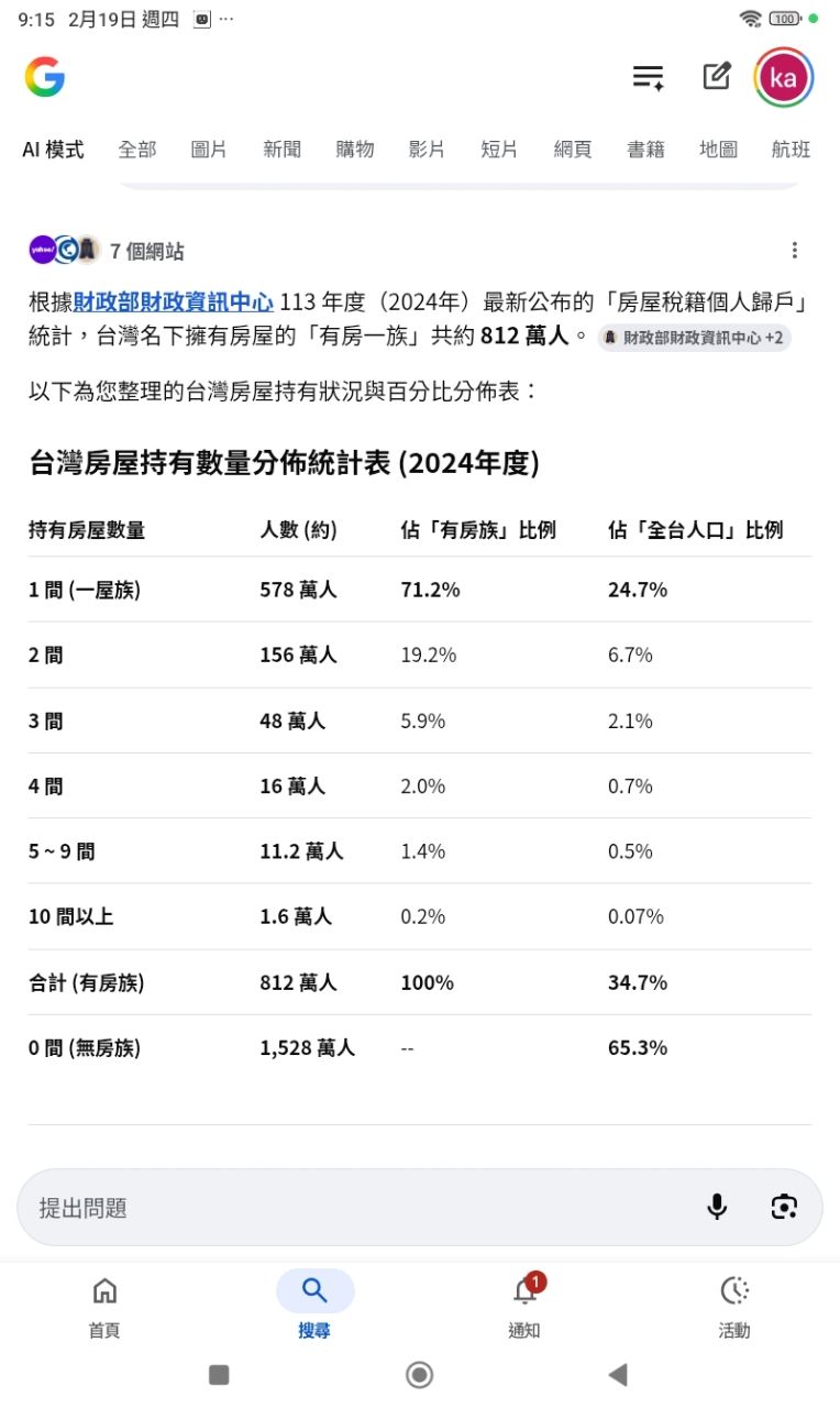 裡面有講到,房貸比例,有房的600多萬人裡面,只有221萬人還背房貸,也就是大概三個