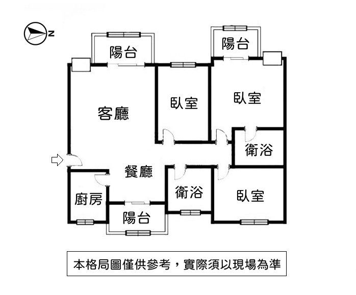 格局 : 3 房 2 廳 2 衛 3 陽台
