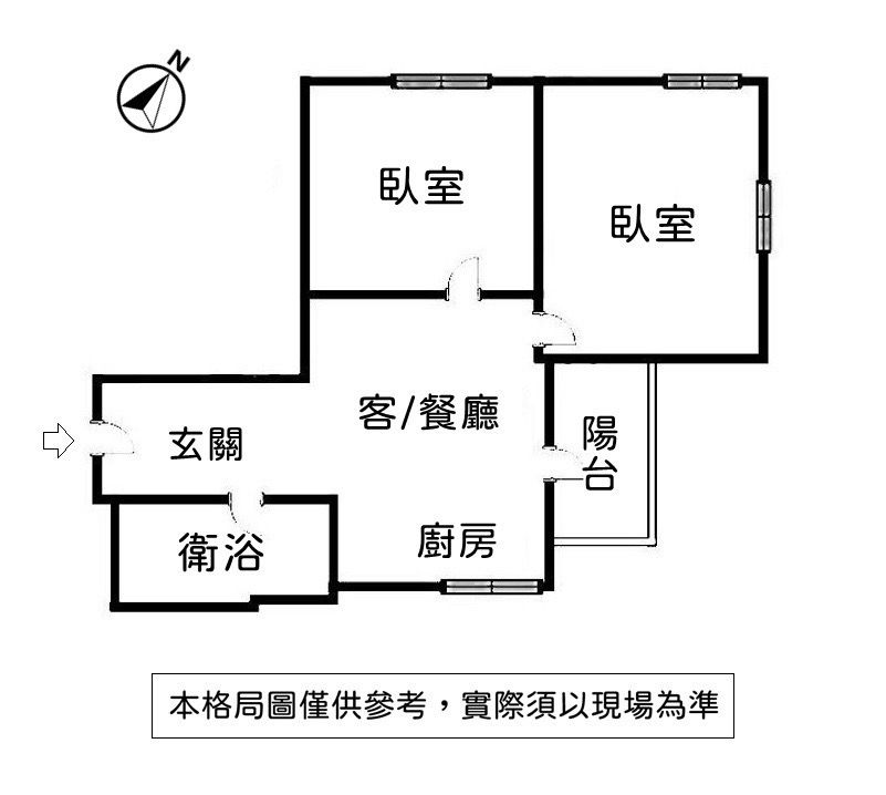 格局 : 2 房 1 廳 1 衛 1 陽台