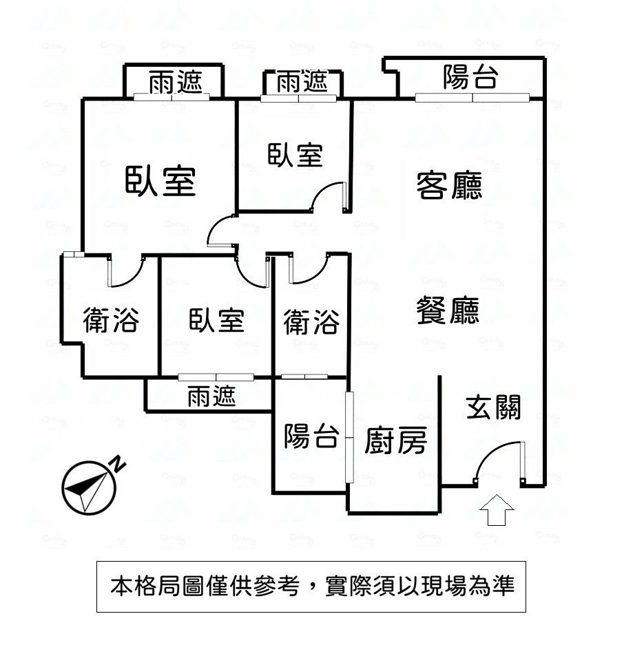 格局 : 3 房 2 廳 2 衛 2 陽台