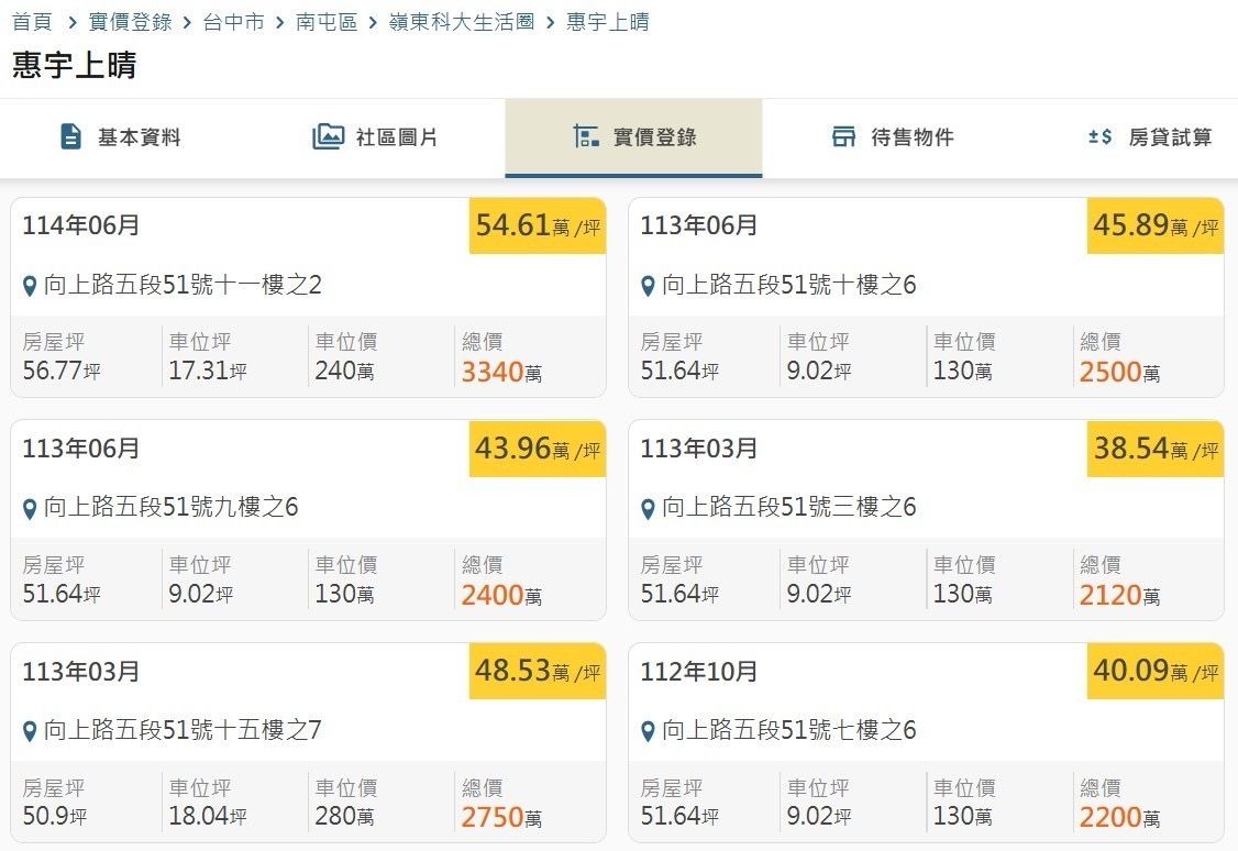 建物門牌: 臺中市南屯區向上路五段(惠宇上晴)