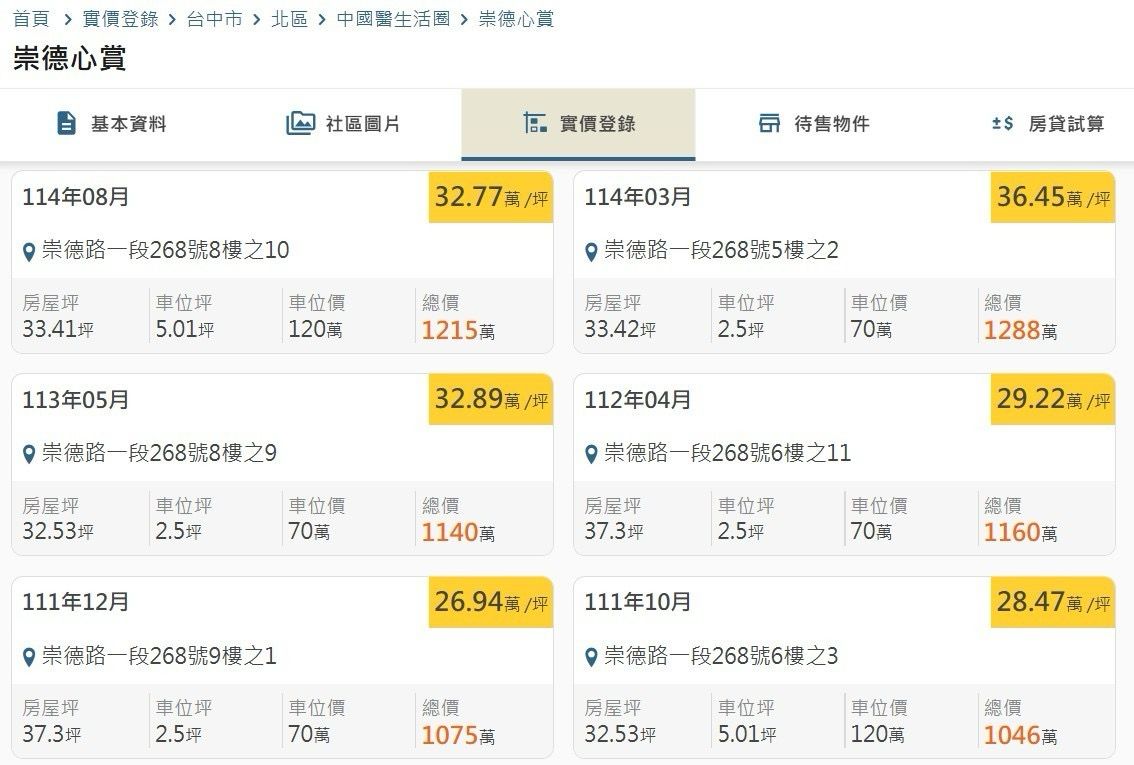 建物門牌: 臺中市北區崇德路一段(崇德心賞)