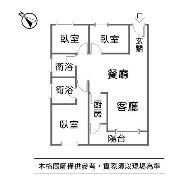 格局 : 3 房 2 廳 2 衛 1 陽台