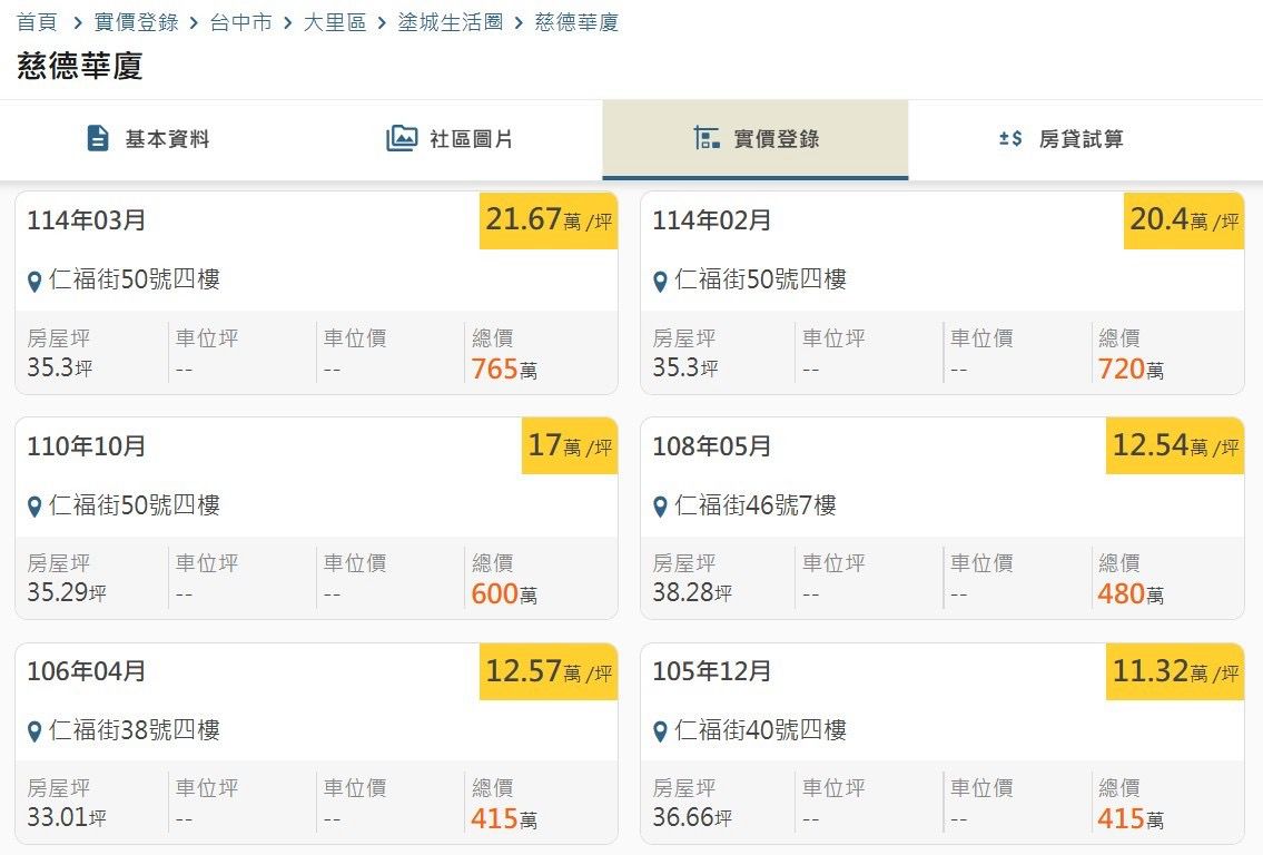 本物件附近地址實價登錄 :