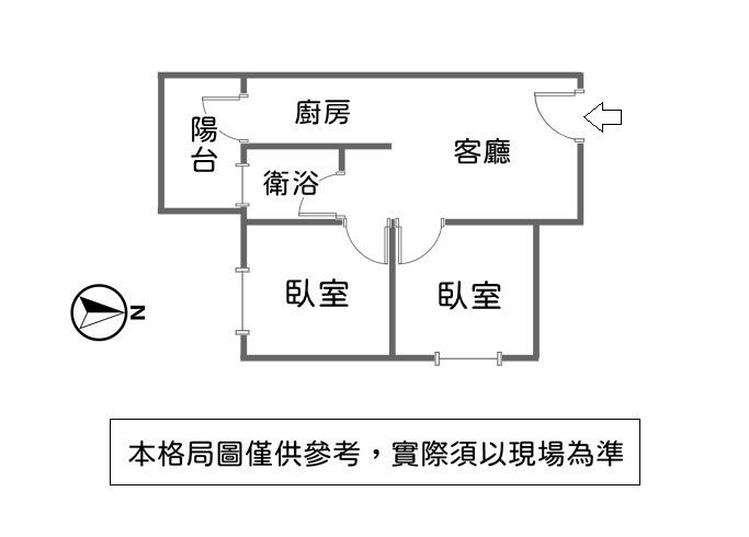 格局 : 2 房 1 廳 1 衛 1 陽台
