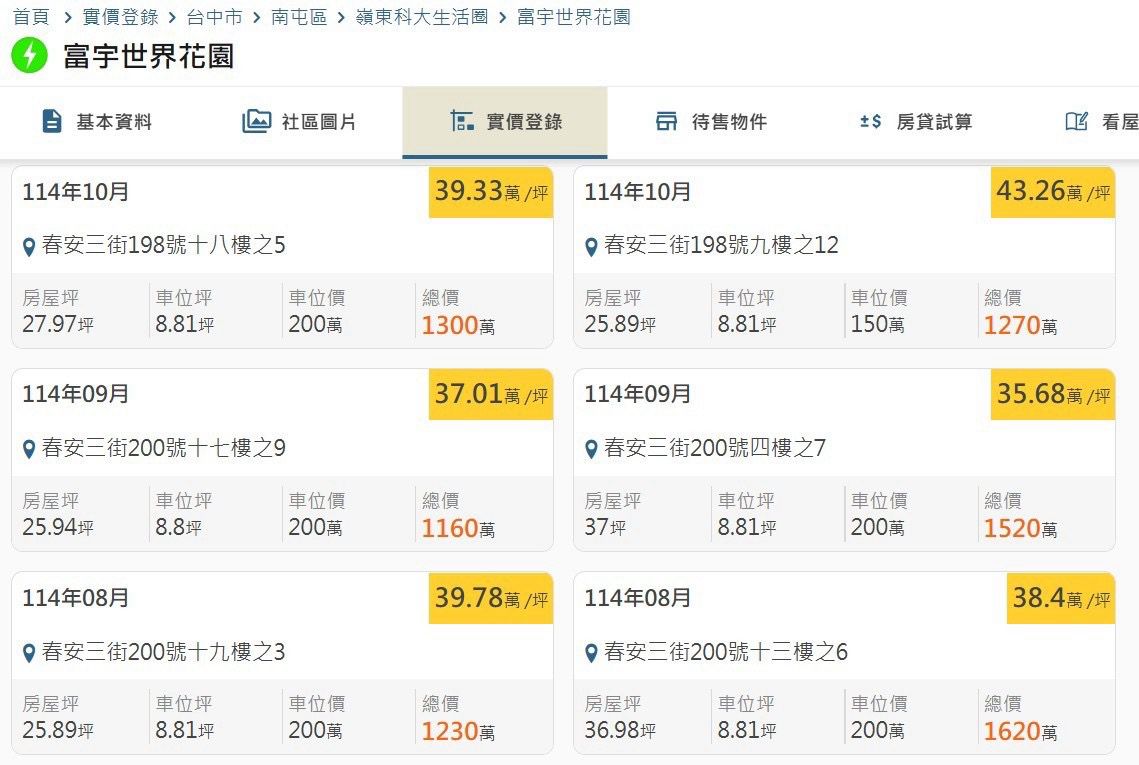 [賣/台中/南屯] 精科富宇世界花園朝南兩房平車