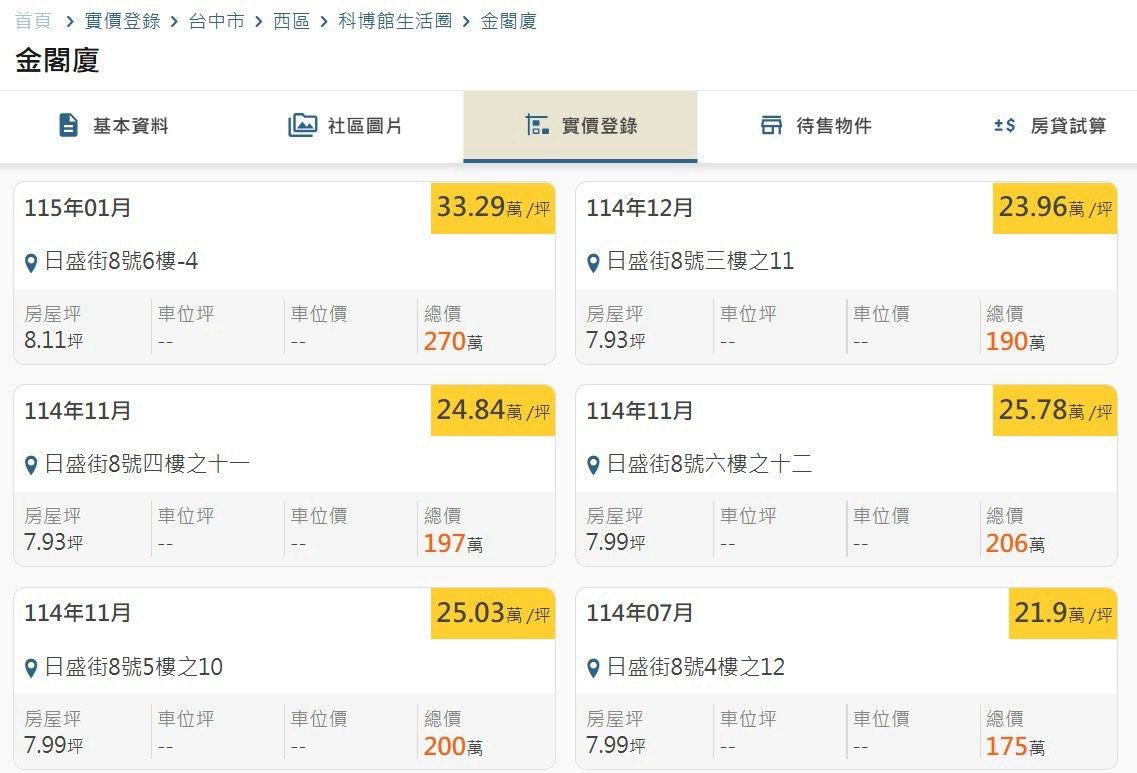 建物門牌: 臺中市西區日盛街(金閣廈)