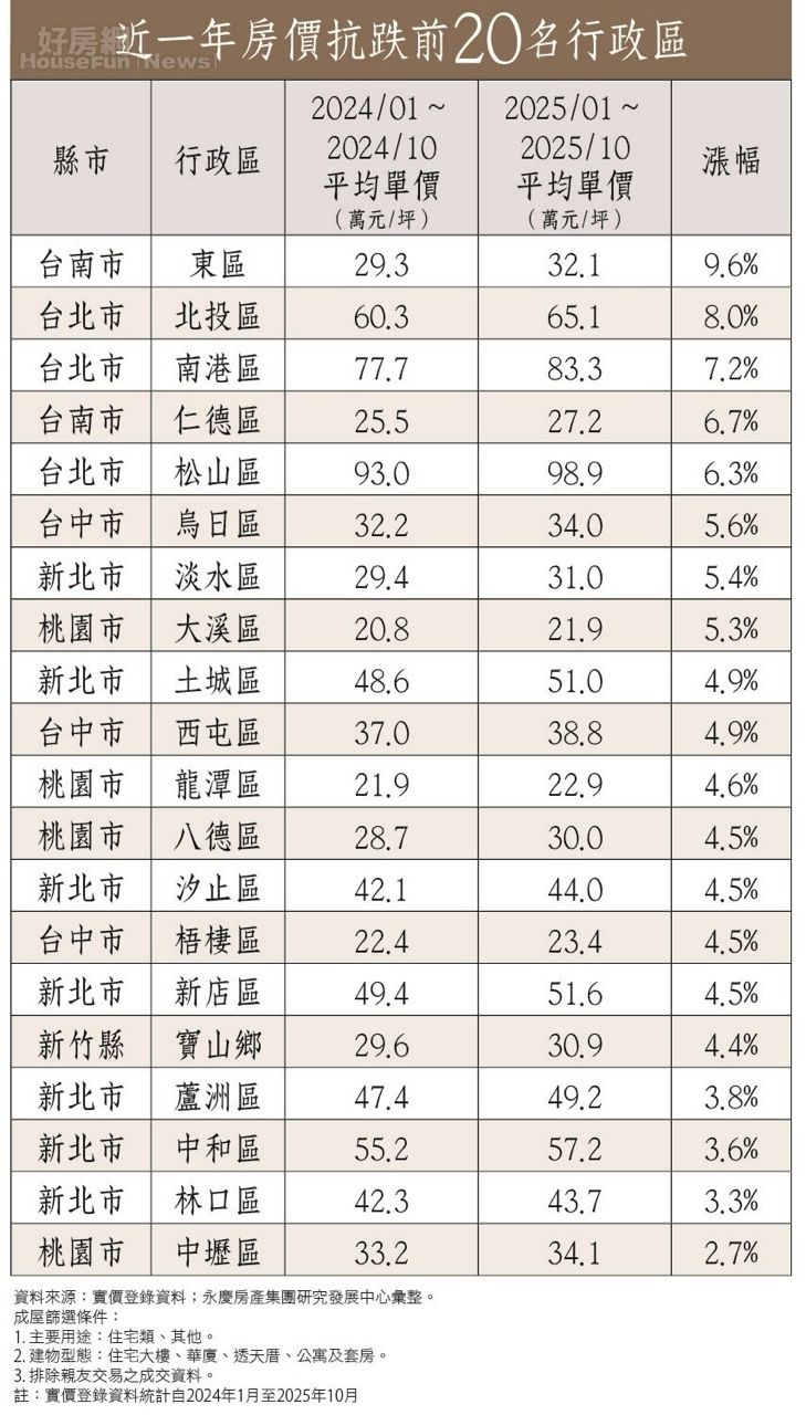 [新聞] 3大條件撐場!房價抗跌前20大行政區
