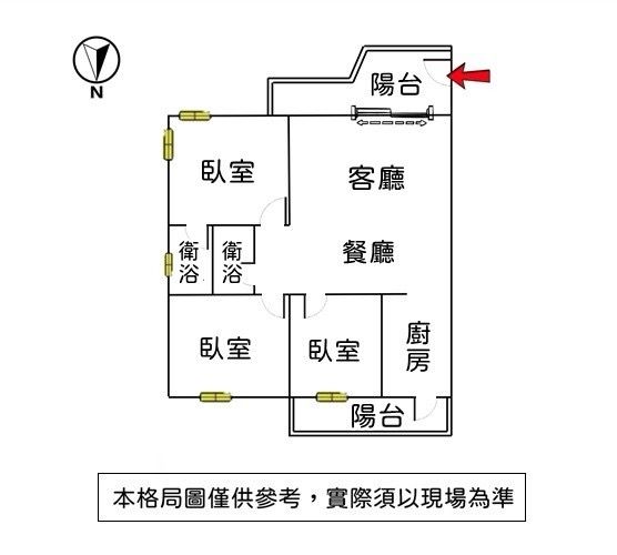 格局 : 3 房 2 廳 2 衛 2 陽台