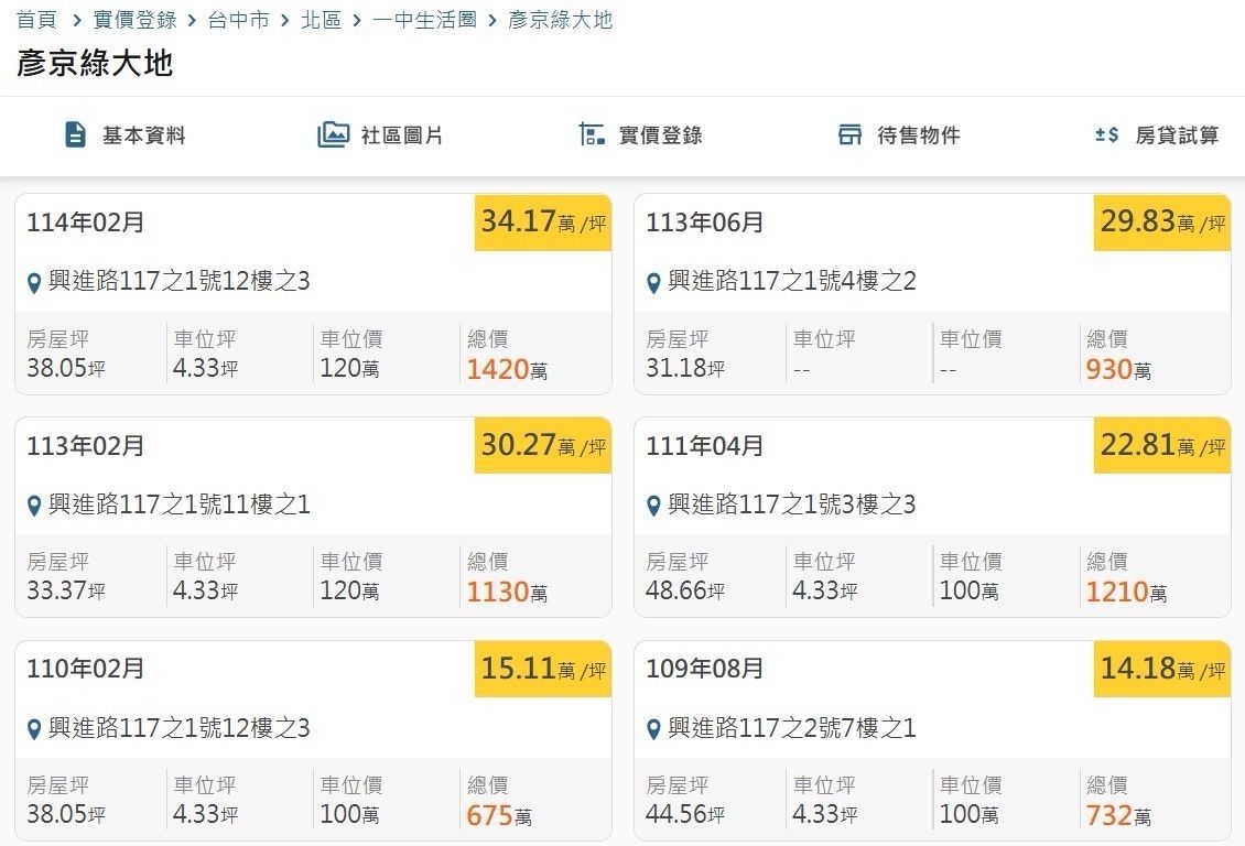 本物件附近地址實價登錄 :