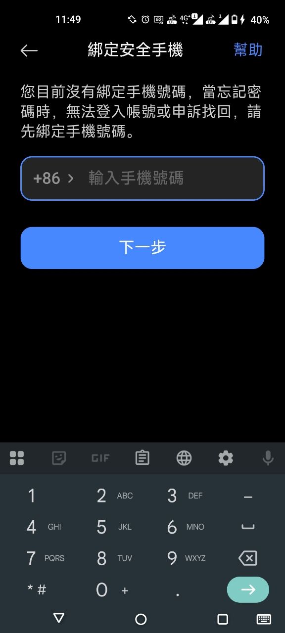 他要求我用86開頭的電話驗證
