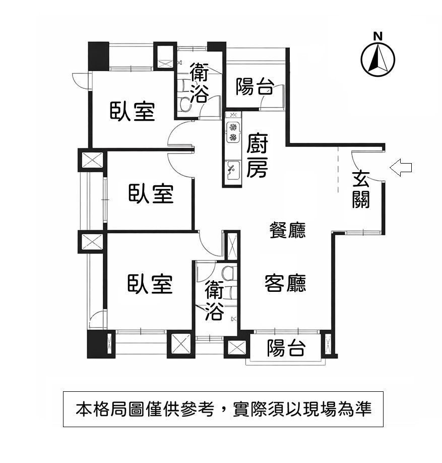 格局 : 3 房 2 廳 2 衛 2 陽台