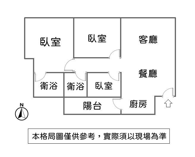 格局 : 3 房 2 廳 2 衛 1 陽台
