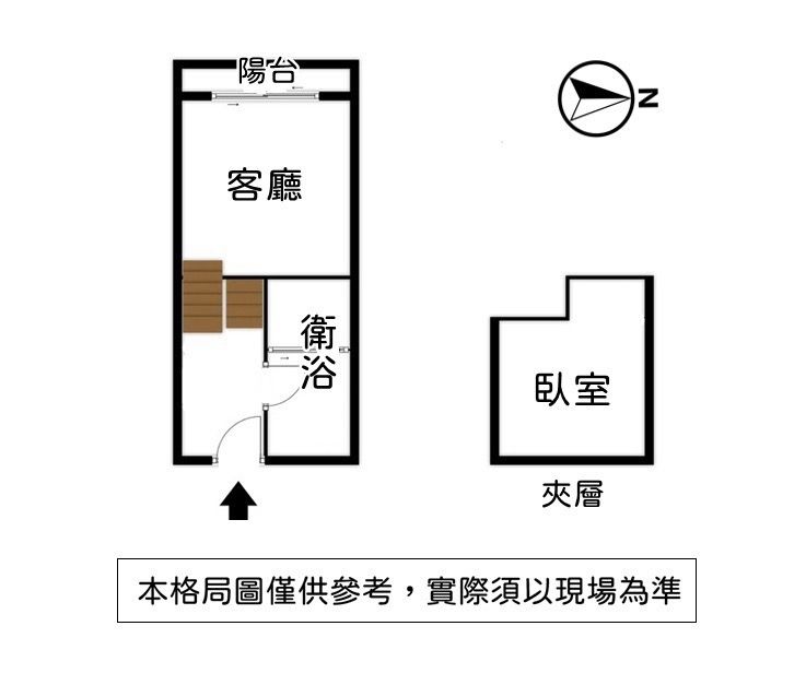 格局 : 1 房 1 廳 1 衛 1 陽台