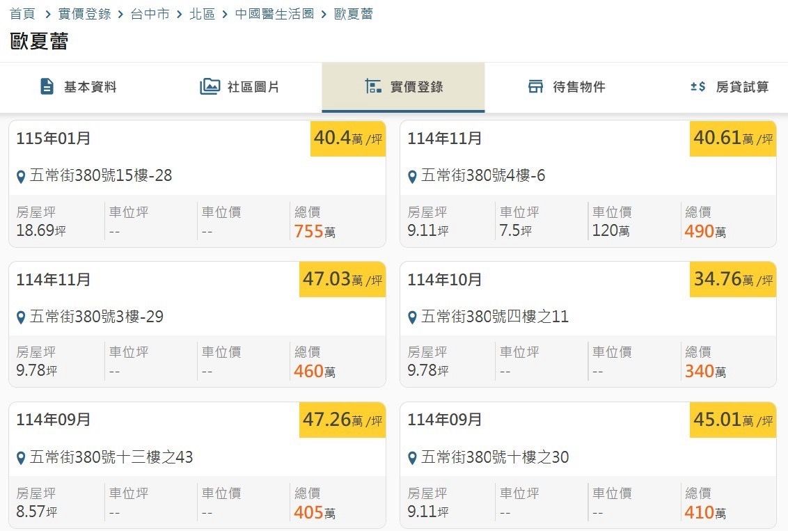 建物門牌: 臺中市北區五常街(歐夏蕾)