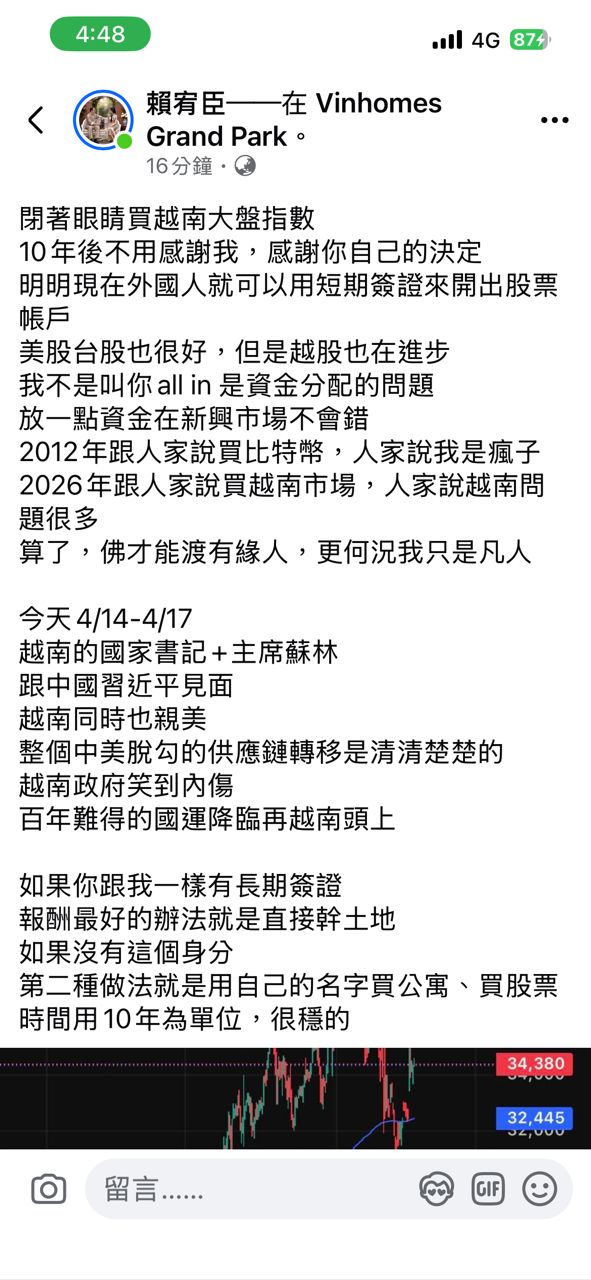 [閒聊] 加密貨幣理事長說要直接幹越南土地