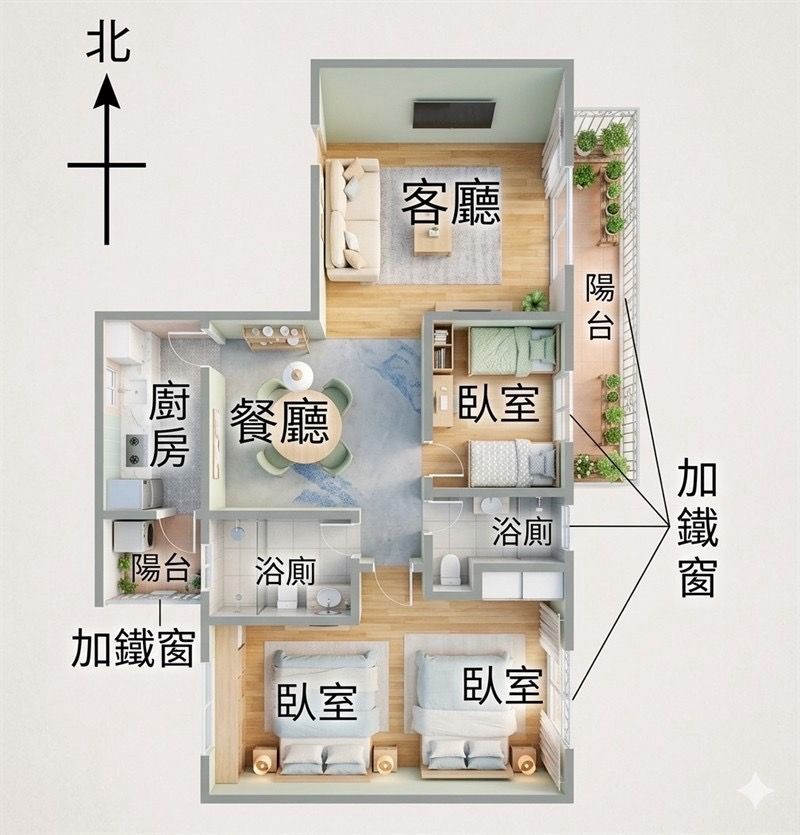 格局 : 3 房 2 廳 2 衛 2 陽台