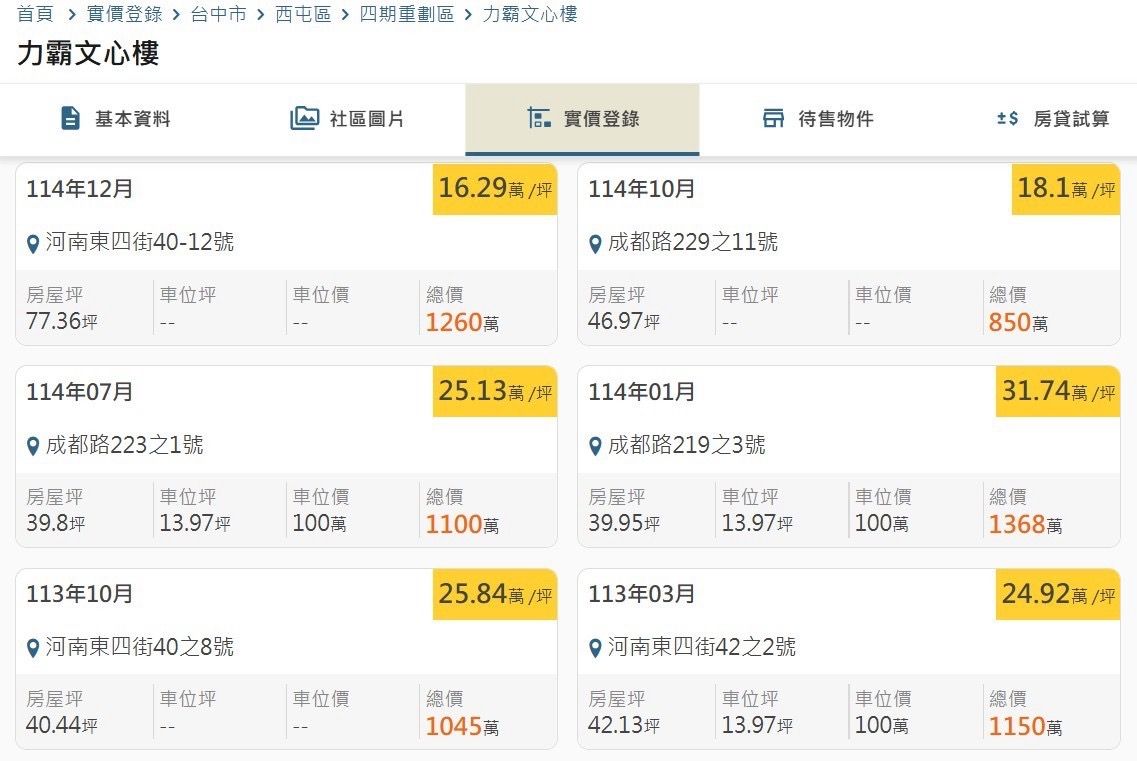 建物門牌: 臺中市西屯區河南東四街(力霸文心樓)
