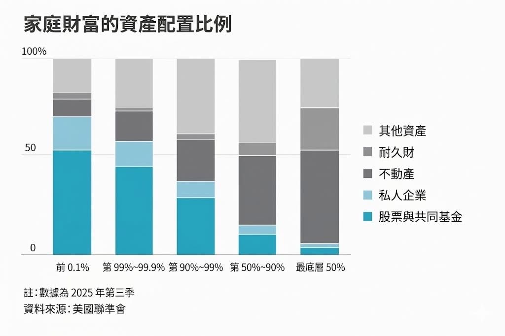 在美國,資產越少的人不動產佔資產的比例越高。